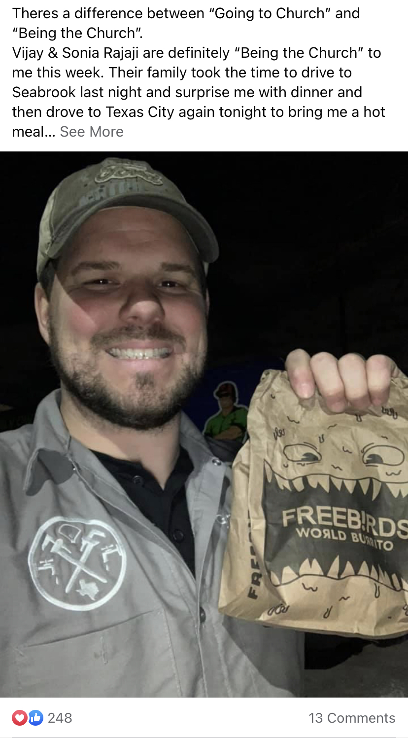 “A lot of times, working a lot of hours and irregular days in plumbing just seems normal,” Josh said. “Plumbing problems happen all the time, so it really becomes a normal thing that people don’t really think about. But when a natural disaster happens, long hours really get pushed to the extreme. A lot of times it goes unnoticed. But for somebody to realize, He’s away from his family. He’s not getting a good meal at night. For them to see that need and come running to help me out was really cool.”